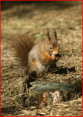 I had seen a red squirrel before so off I went over to Brownsea Island in Dorset to try to photograph them. A whole day of walking around the island and I did not even see one never mind photograph one! I heard that there was a reasonable size population of reds in the Freshfield Squirrel Reserve at Formby Point in Merseyside, so off I went to investigate, camera gear and a couple of bags of hazel nuts in hand. I could not believe my eyes, one of Britain’s rarest mammals and they were everywhere, including sitting in my camera bag and hanging from my coat pocket, both locations of my bags of nuts. I found a secluded bank away from visitors to the park where I could quietly sit and wait for the squirrels to come to me, or more correctly, my hazel nuts! |